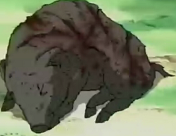 Descrição: É um Javali selvagem que foi atacado por capangas do Gatou. Ele recebeu feridas graves e estava em um estado ruim, mas se utilizado em conjunto com um Shinobi, pode contribuir ativamente em uma batalha.
