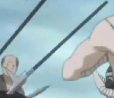 Descrição: É uma lança que tem duas pontas na sua lâmina, sendo uma maior, e mais propicia para perfuramento, e a menor para cortes. É usada por mercenários do Gatou contra Zabuza.